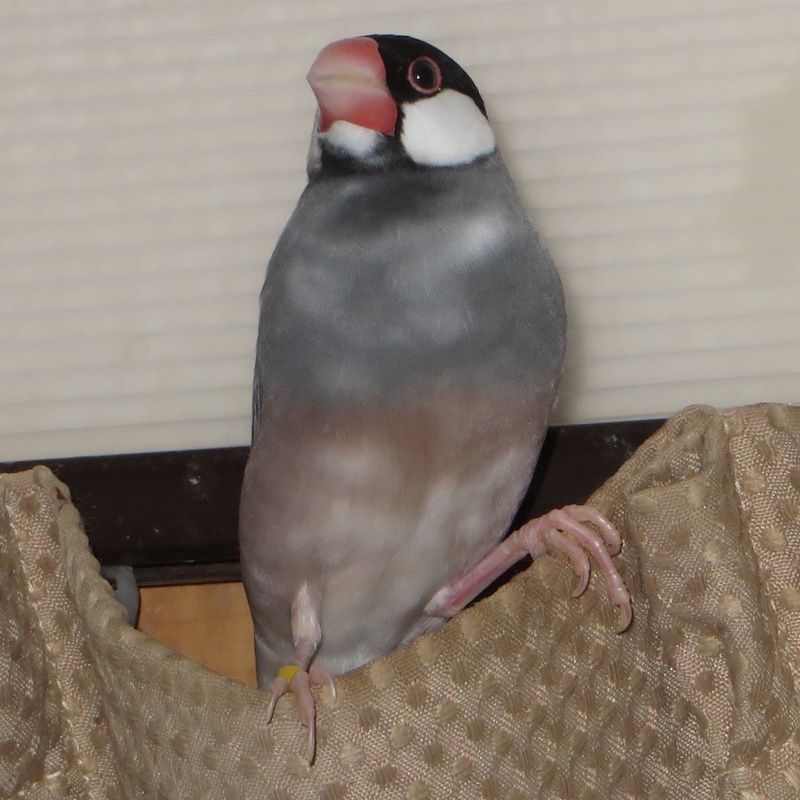No.01 募集休止 桜文鳥の手乗りヒナ「こっぺ」【ひとり餌後性別不明】 自家繁殖(12/6孵化・両親白・桜)コビィ&トム